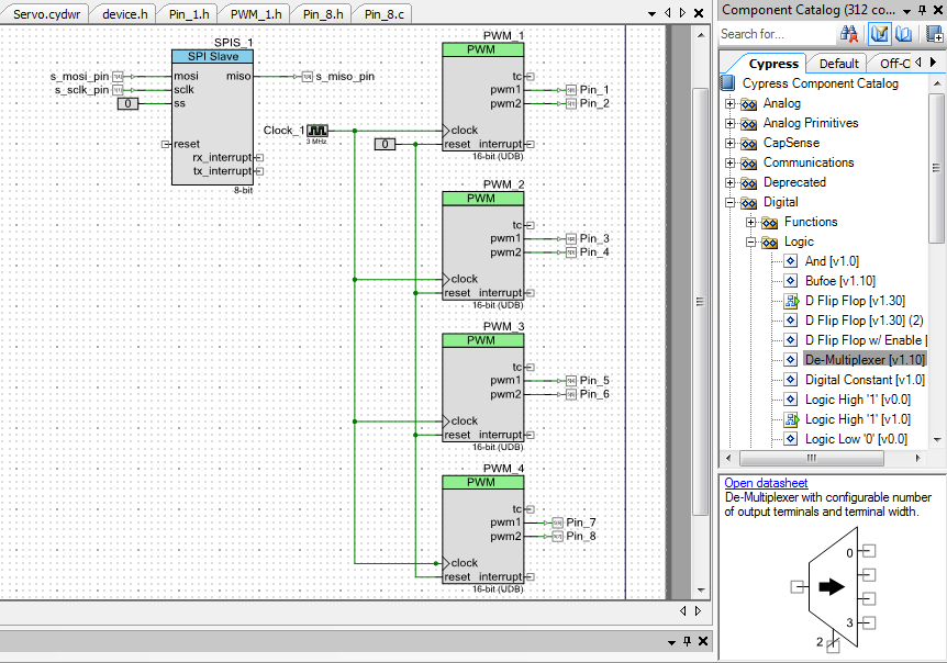 PSoC Creator is a free GUI-based design environment for Windows that is able to remove users from some elements of embedded programming that might seem arbitrary or unimportant, like the many intricacies of an initialization routine. It simply requires the placement of “components” that serve as reconfigurable libraries. As soon as you drag-and-drop one of these components into your project, all of those tricky initializations are immediately handled internally. Once you’ve dropped one of these wonderful components into your schematic, all you have to do to start using them is call any one of their many useful API’s from your C-code, all of which are well documented in their respective component datasheets. Take a look at this example of a component datasheet so you know exactly what you’re in for. You can even create your own components or download community developed ones, including some that we’ve already developed specifically for the RPiSoC.